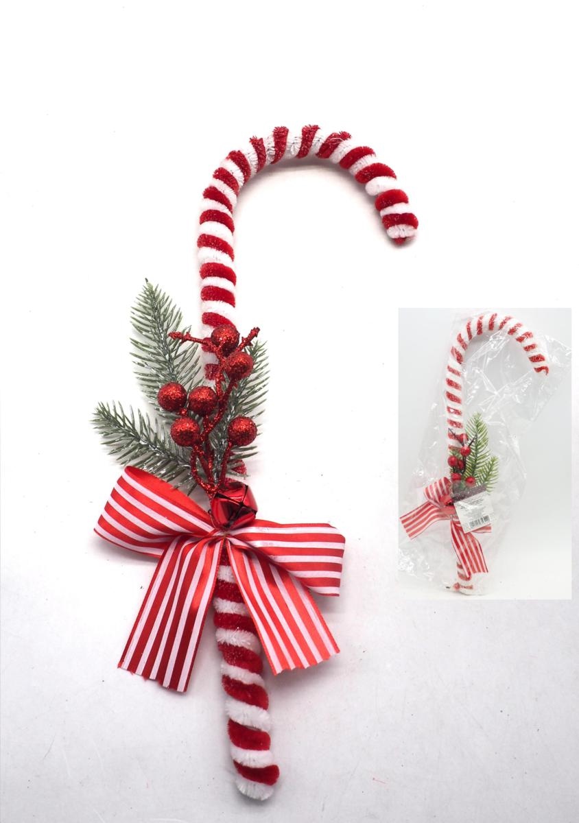 Stick Natalizio Bianco/Rosso H40Cm C/Decorzioni - Linea Candy
