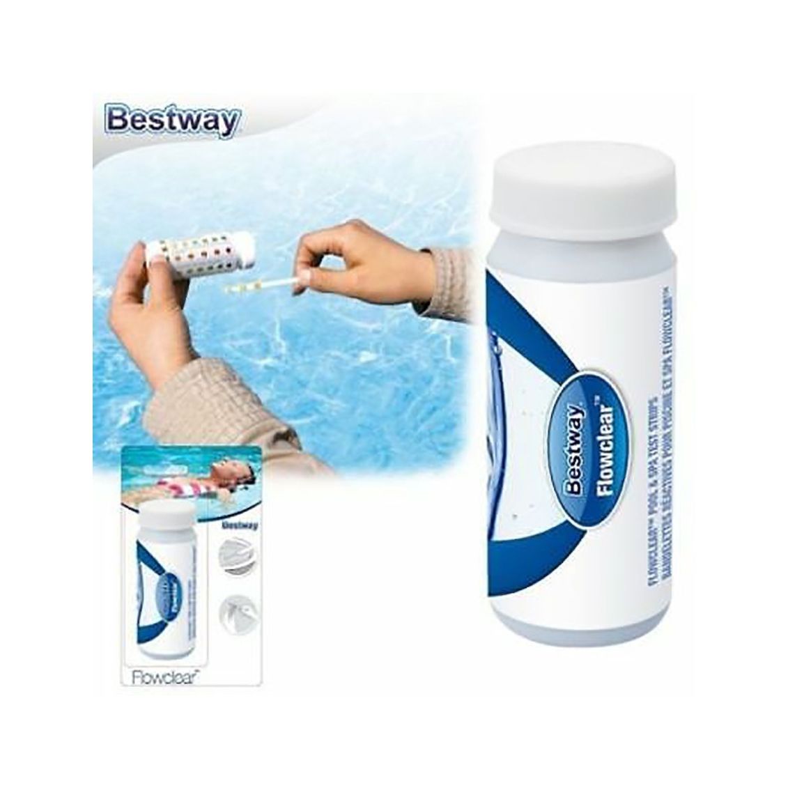 .Le Strisce Test 3 Funzioni Bestway (modello 58142) sono lo strumento indispensabile per monitorare in modo rapido e preciso la qualità dell'acqua della tua piscina fuori terra o idromassaggio spa. Ogni pratica striscetta di carta reattiva è in grado di rilevare simultaneamente tre parametri fondamentali per la balneazione: il livello di cloro libero, il pH dell'acqua e l'alcalinità totale. Il loro utilizzo è estremamente intuitivo: basta immergere una singola striscia in acqua e confrontare immediatamente i colori ottenuti con la comoda scala cromatica stampata sull'etichetta del flacone. Questo prodotto è ideale per chiunque possieda una piscina domestica e desideri mantenere un ambiente igienico, sicuro e cristallino senza dover ricorrere a complessi kit di analisi chimica in provetta. La confezione salvaspazio contiene 50 strisce monouso.