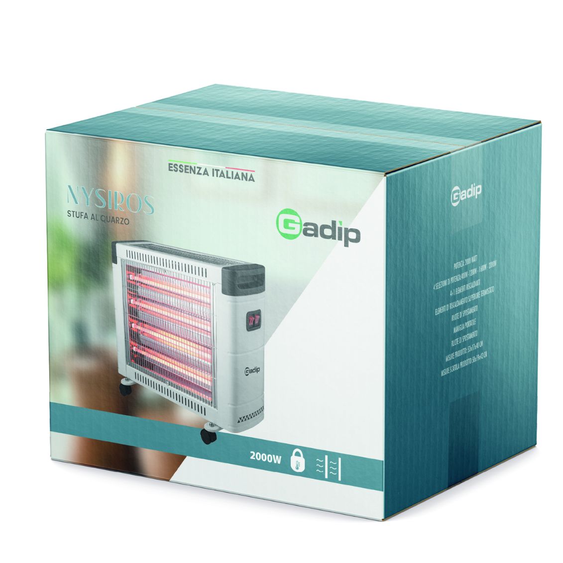 .La stufa al quarzo DPM Nisyros GLX2000J è la soluzione potente e versatile per riscaldare rapidamente ambienti medio-grandi. Con una potenza massima di 2400 Watt e ben 5 livelli di regolazione, offre un calore personalizzabile grazie ai 4 elementi laterali e all'elemento superiore aggiuntivo. Dotata di termostato regolabile, ventilazione turbo per diffondere il calore e ruote per un facile spostamento, unisce efficienza e praticità. La sicurezza è garantita dall'interruttore antiribaltamento, rendendola ideale per ogni stanza della casa.