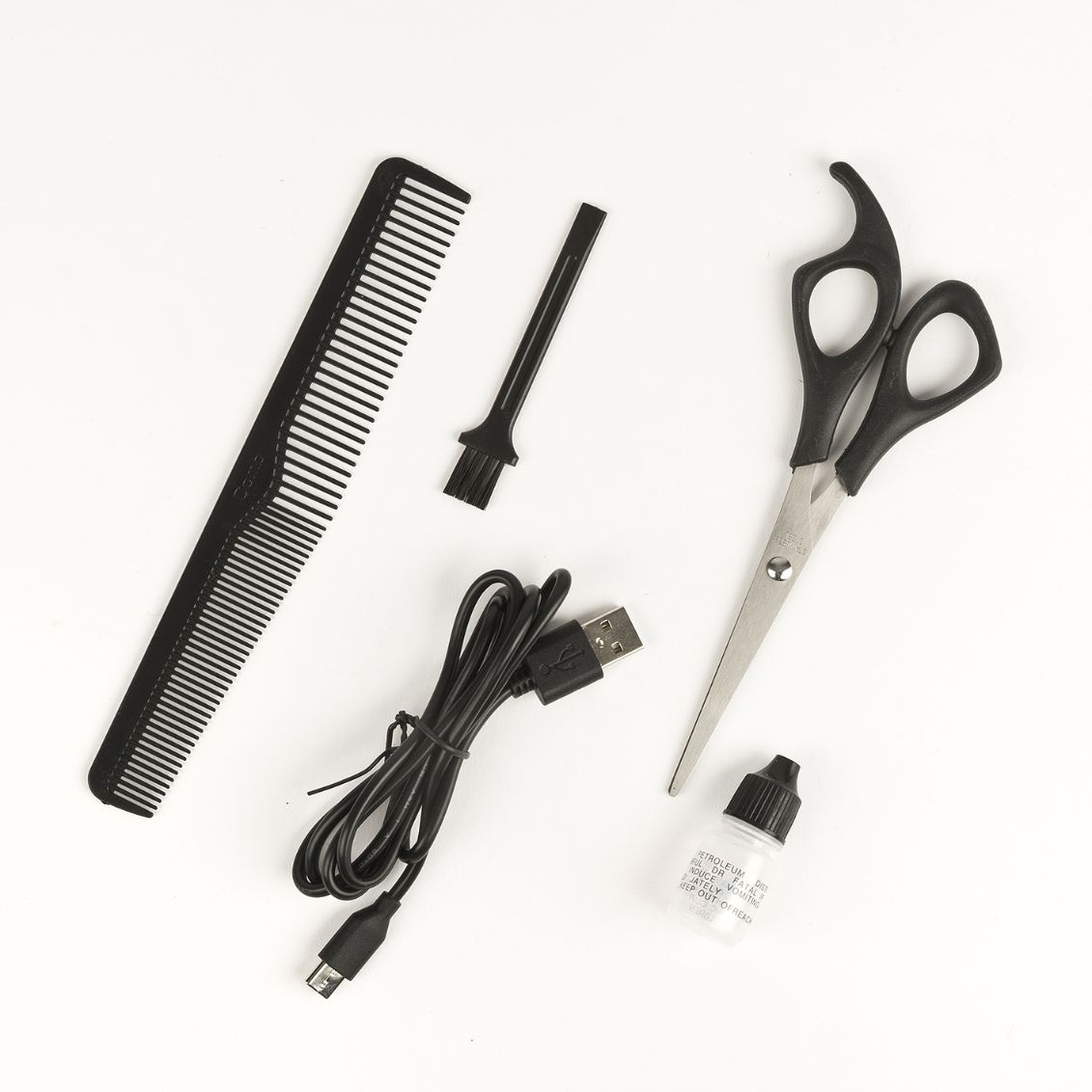La confezione include tutto il necessario per la cura personale: oltre al tagliacapelli e ai pettini distanziatori, troverai un cavo USB per la ricarica, un pettine, forbici per rifiniture e un kit con olio e spazzolina per la manutenzione delle lame.