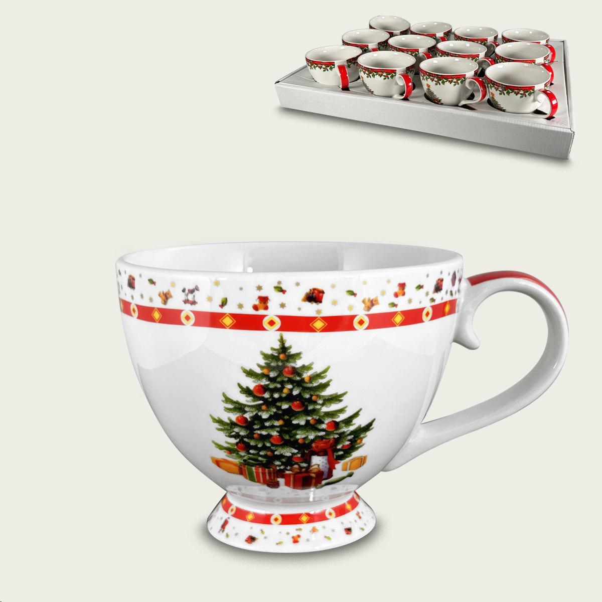 Set 2Tazze H.11,5X9,5X19Cm. Disegno Natale 3 Assortimenti
