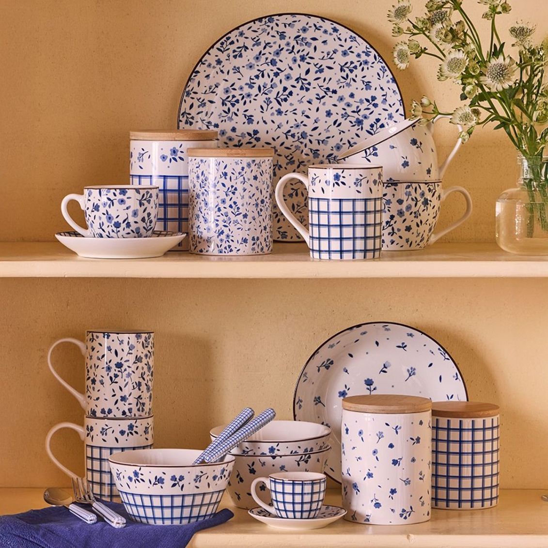 La collezione Cottage di Tognana si ispira alla freschezza e all'armonia della natura, con due varianti di decoro che si abbinano perfettamente: la fantasia floreale iris porta eleganza e delicatezza con motivi botanici, mentre la fantasia geometrica aggiunge un tocco contemporaneo e coordinato. La palette cromatica blu e bianco rende queste mug perfette per ogni stile di tavola, dal classico al moderno.