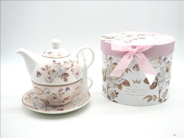 Tea For One Teiera Con Set Tazza E Piattino W/Roses