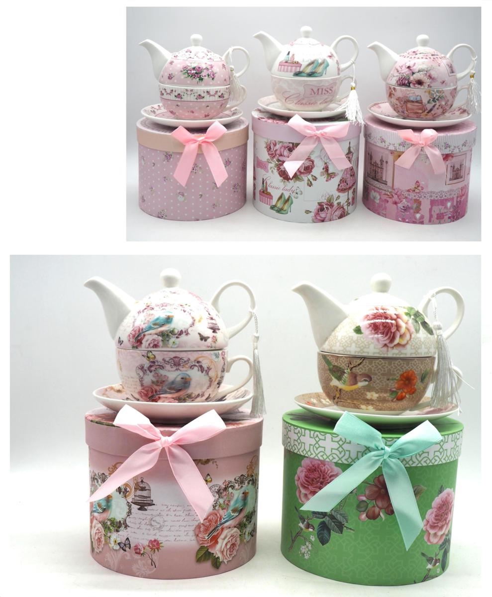 Teiera Con Set Tazza E Piattino Con 3 Disegni
