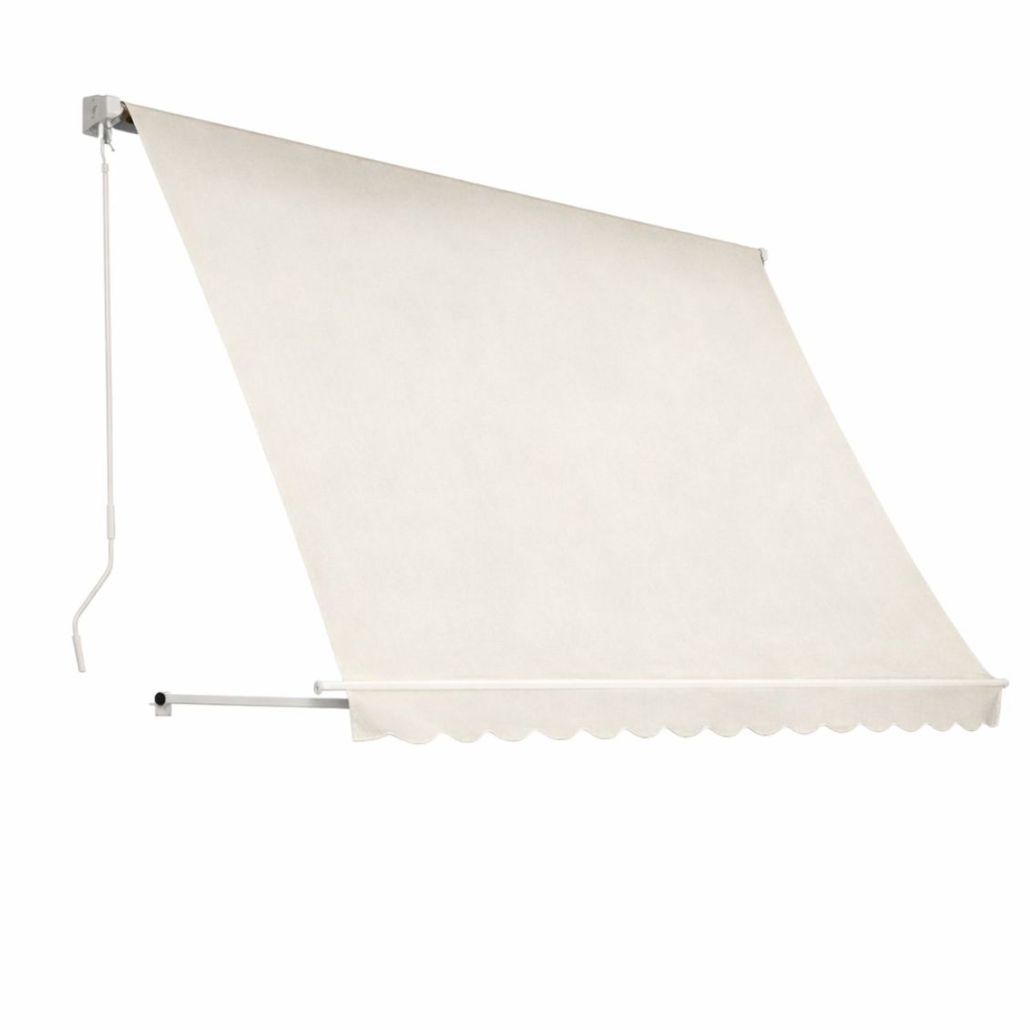 La tenda si installa fissando le due staffe incluse a parete o soffitto, in corrispondenza dei punti di ancoraggio dei bracci. L'operazione non richiede competenze specializzate ma è consigliabile verificare la solidità del supporto prima del montaggio, specialmente in presenza di vento frequente. Una volta installata, la manovella per argano permette di aprire e chiudere la tenda con facilità.