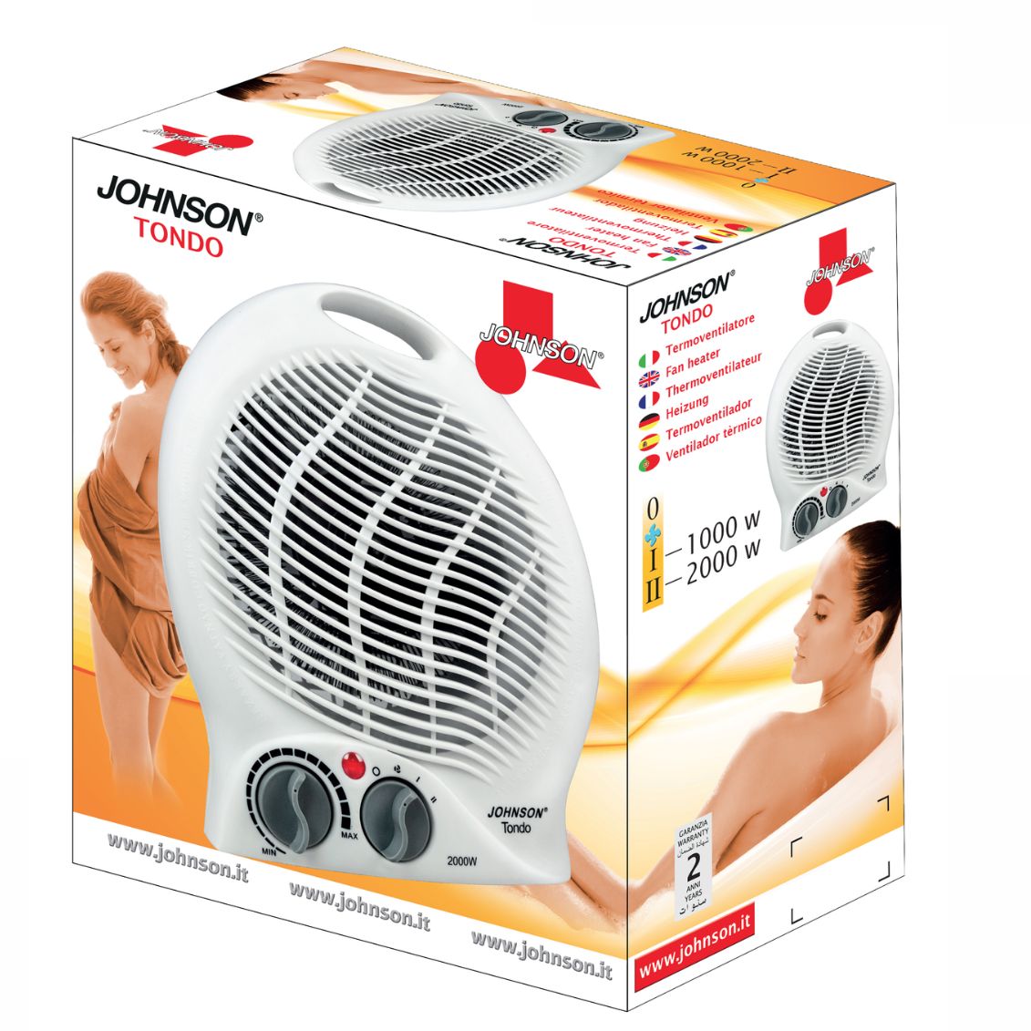.Calore immediato tutto l'anno! Il termoventilatore Tondo di Johnson con 2 livelli di potenza (1000-2000W) è la soluzione compatta e versatile per riscaldare rapidamente ogni ambiente. In estate diventa un pratico ventilatore per rinfrescare le tue giornate.