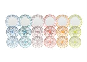 Colori vivaci e decori raffinati: sei tonalità diverse e motivi decorativi unici per una mise en place allegra, creativa e mai banale.