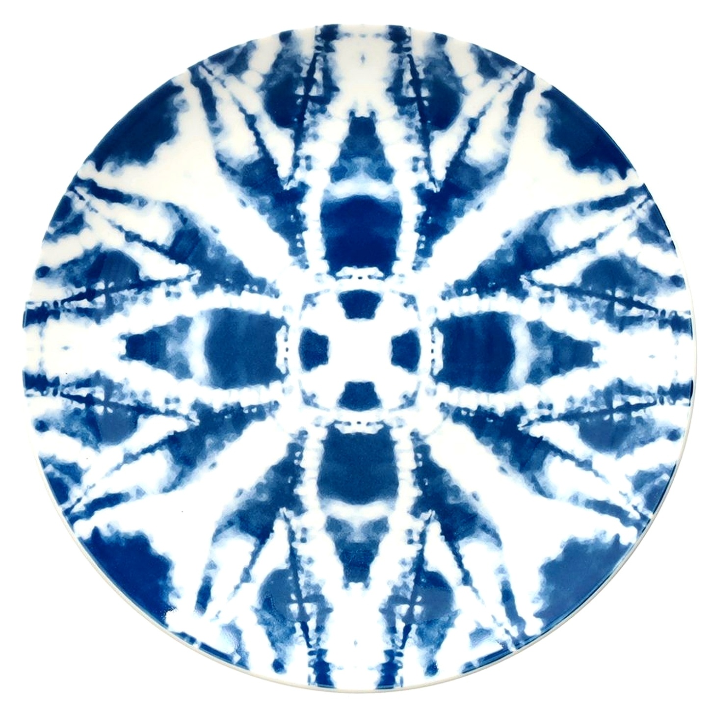 Motivo ispirato all’oceano: sfumature di blu e disegni a onda per una mise en place dinamica e suggestiva.