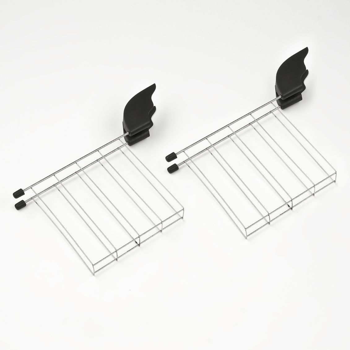 Il tostapane include 2 pinze in acciaio inossidabile che si inseriscono negli appositi alloggiamenti laterali corpo macchina rimanendo sempre a portata mano. Le pinze permettono di estrarre toast particolarmente piccoli o fragili che potrebbero rimanere incastrati, rimuovere fette calde senza scottarsi dita e maneggiare toast imbottiti delicatamente. L'acciaio inox garantisce igiene resistenza calore e facilità lavaggio. Le pinze quando non utilizzate si ripongono elegantemente negli slot dedicati mantenendo ordine.