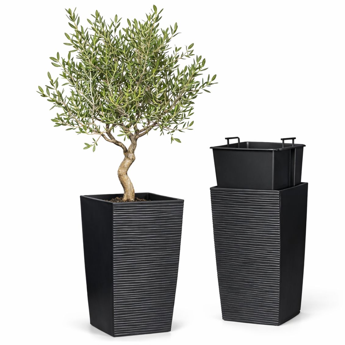 Il modello base dell'Aurora 35x35x67cm è un vaso "a tutta capienza" (un unico blocco vuoto fino al fondo) e non include l'inserto/secchiello interno estraibile, permettendoti così di utilizzare il massimo volume di terra possibile per le radici fittonanti o profonde.