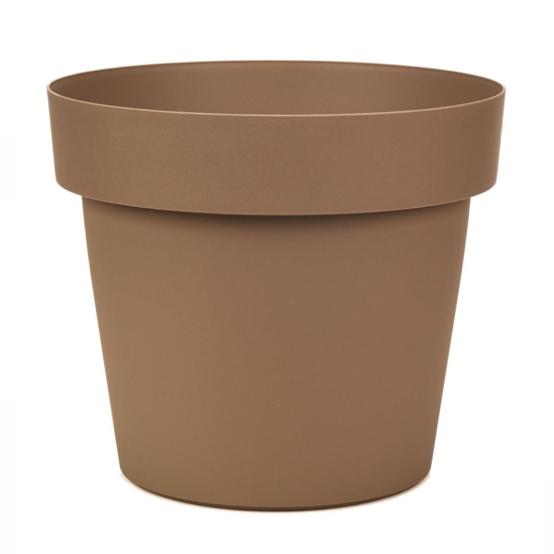 Melrose è un vaso rotondo troncoconico colore mocca, diametro 50 cm, altezza 41 cm, capacità 43,1 litri, con inserto per riserva d’acqua incluso (compatibile con vasi 30–60 cm). Codice EAN: 3838851359421.