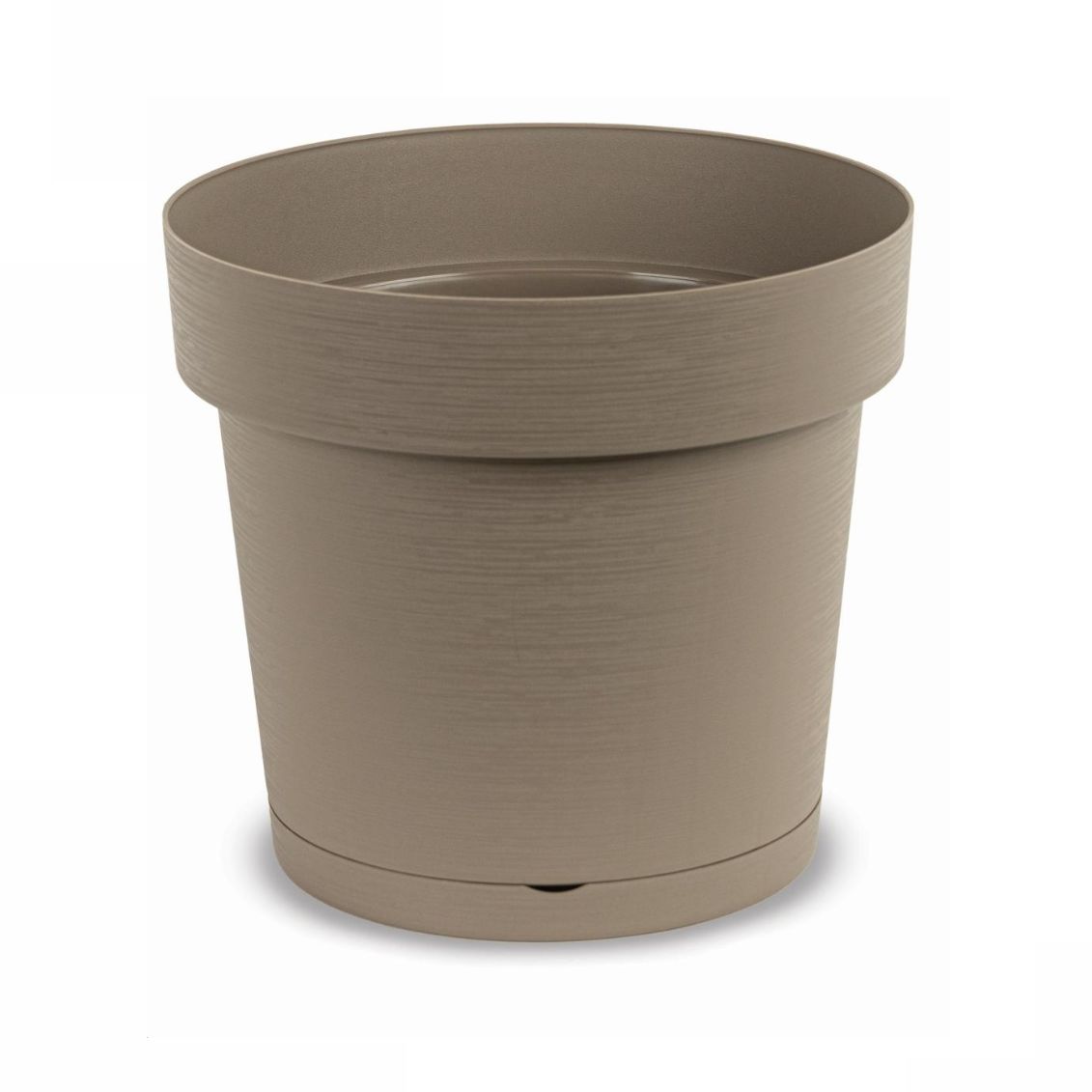 Il vaso Glamour si distingue per la finitura a texture incisa sulla superficie esterna, che aggiunge profondità visiva e un carattere decorativo rispetto ai vasi lisci. Il colore mocca si abbina facilmente a qualsiasi tipo di arredo da giardino o terrazza. La capienza generosa di 28 litri lo rende adatto a piante di media e grande dimensione, mentre il sottovaso incluso protegge le superfici e trattiene l’acqua in eccesso, evitando ristagni sul pavimento.