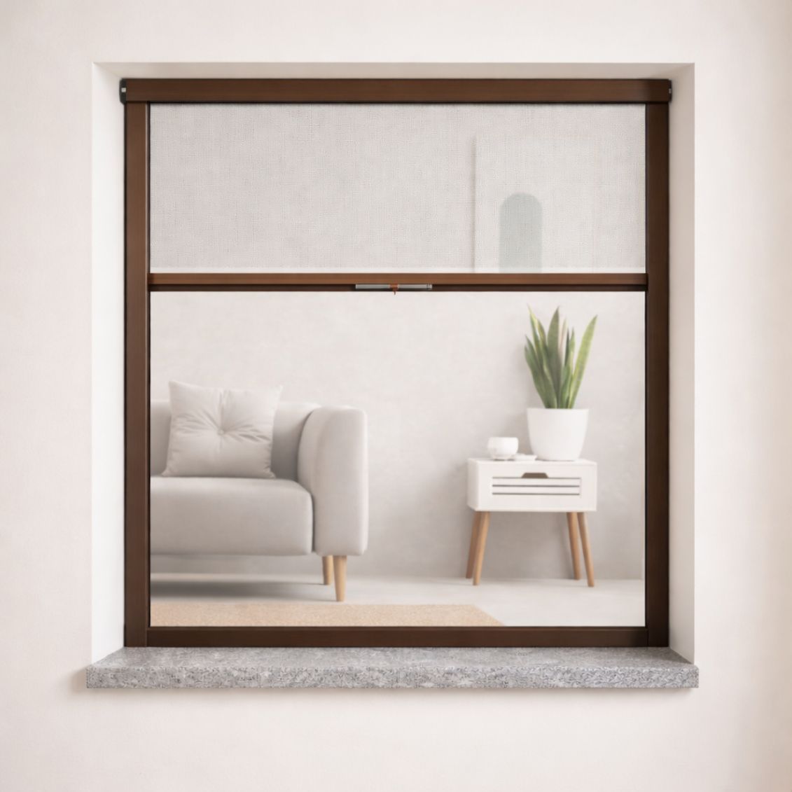 La Zanzariera a Rullo in Alluminio 140x160 cm Marrone RAL 8017 è una zanzariera verticale con telaio in alluminio, meccanismo con frizione, chiusura rallentata e funzione stop cimici. Riducibile e conforme alla norma europea UNI13561. Codice EAN: 8027914010491.