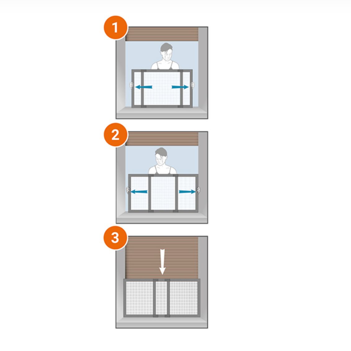 La zanzariera si inserisce nella sede della tapparella, sfruttando lo spazio del cassonetto esistente. Il telaio è estensibile in larghezza per adattarsi al vano e ribaltabile per orientarsi correttamente in base alla configurazione dell'apertura. Non sono necessarie forature o modifiche strutturali all'infisso.
